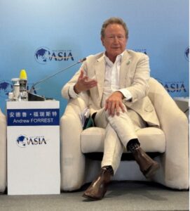 Andrew Forrest, executive chairman and founder of Fortescue, made the session’s most emphatic argument for clean energy, grounding it in arithmetic rather than ideology. Fortescue is eliminating 1 billion liters of diesel from its operations within years, not decades, with the world’s first fully green iron ore operation set to come online next year. Going fully green had been calculated to cost 6.2 billion U.S. dollars, compared to 18 billion dollars for a comparable fossil fuel development. Once capital is paid off, the operating cost of renewable energy approaches zero. Solar panel efficiency, he said, is being pushed from 23 percent toward 40 percent, and Fortescue is now installing 50,000 panels per day in Australia. The principal obstacle to the transition is not technical or economic but political, he said, specifically the conflicts of interest that prevent leaders from embracing necessary change. Countries that achieve energy sovereignty achieve genuine independence; those dependent on imported fuel remain exposed.